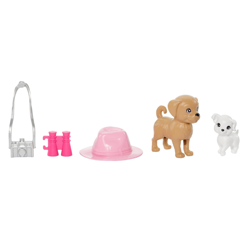 - Accessories include a camera, binoculars, summer hat, and two adorable pet pups to inspire storytelling.