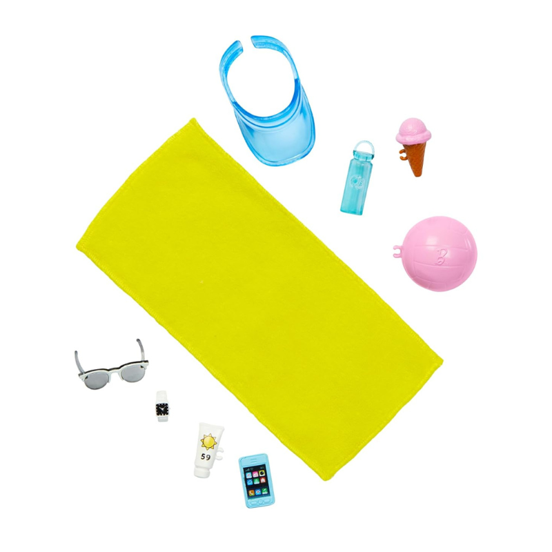 - Fun Accessories – Includes visor, sunglasses, watch, towel, water bottle, sunscreen, and smartphone.