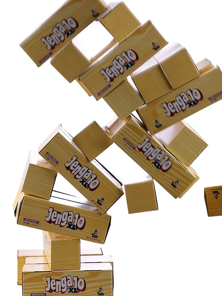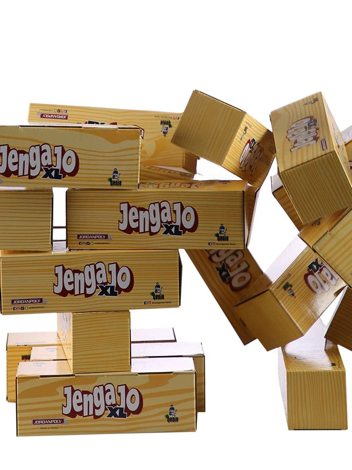 JengaJo XL is a giant twist on the classic block-stacking game! With foldable cardboard blocks that build a tower up to 1 meter high — three times taller than the original — this game takes the fun to the next level. Perfect for parties, family gatherings, and endless laughs.