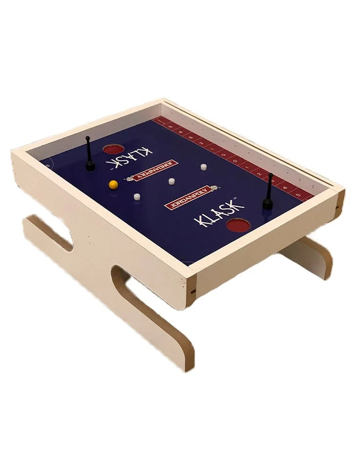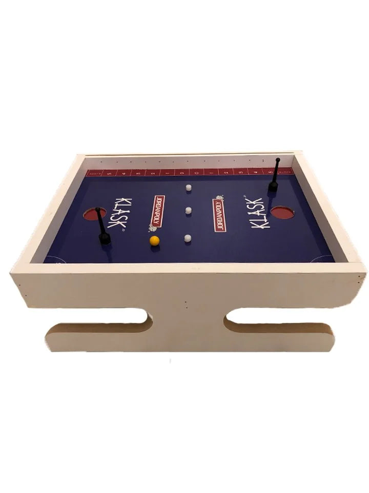 Klask is a fast-paced tabletop game, often compared to Air Hockey, but with a fun magnetic twist! Players use magnetic handles under the board to control their playing pieces on top, competing to score points with the small round ball. Exciting, quick, and full of skill, it's perfect for friendly battles with family and friends.