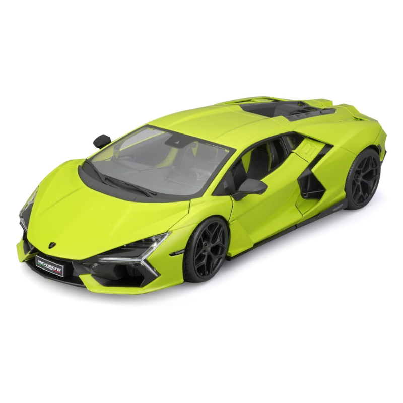 Unleash the power of the all-new Lamborghini Revuelto with this 1:18 scale Special Edition model by Maisto. Finished in an eye-catching green metallic, this officially licensed replica is a stunning blend of cutting-edge style and intricate detail—perfect for any supercar collection.