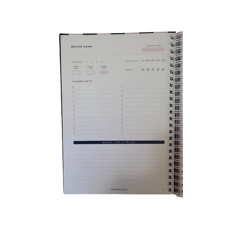 Keep your favorite dishes, family traditions, and culinary creations all in one place with The Mind Muse Recipe Journal. Thoughtfully designed for food lovers, this journal combines elegance with functionality, making it the perfect kitchen companion.