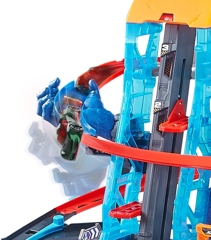 - Set Includes: 1x Metal Machines Gorilla, 1x elevator, 1x helicopter, 1x repair station, 1x Metal Machines car, 3m (10ft) track, 2 floor levels, and instruction manual